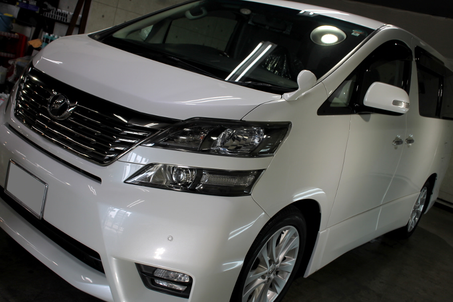 【トヨタ・ヴェルファイア】ガラスコーティング:メンテナンス施工